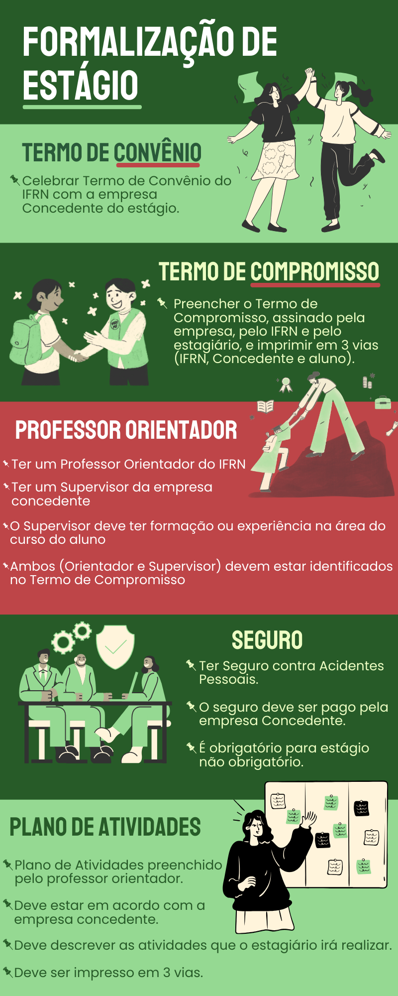 Com o intuito de fortalecer os mecanismos de articulação do IFRN com o mundo do trabalho, as ações nessa área buscam prospectar parcerias e, sobretudo, oportunidades de encaminhamento de discentes e egressos para estágio, aprendizagem, empregos e outras formas de prática profissional.