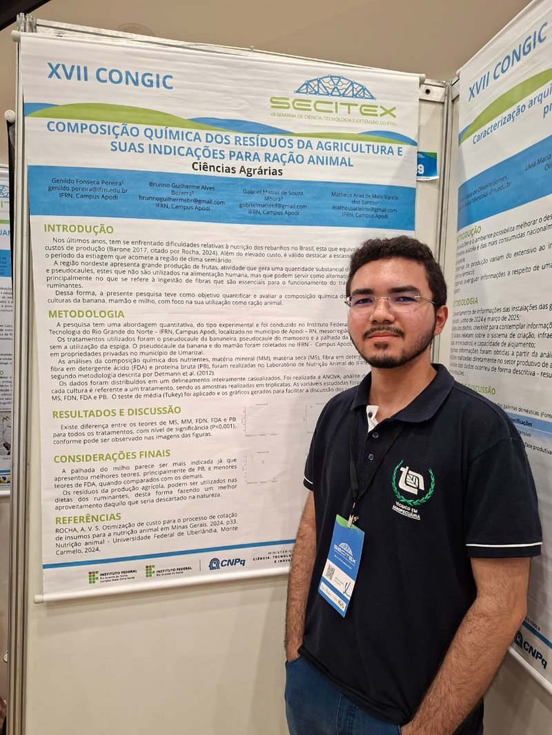 O Projeto de Pesquisa é coordenado pelo professor Genildo Fonseca e têm como membros os estudantes do curso de Agropecuária Brunno Guilherme, Gabriel Mthias e Matheus Ariel, durante a Secitex alcançou a terceira posição do Congresso de Iniciação Ciênctífica, categoria pôster.