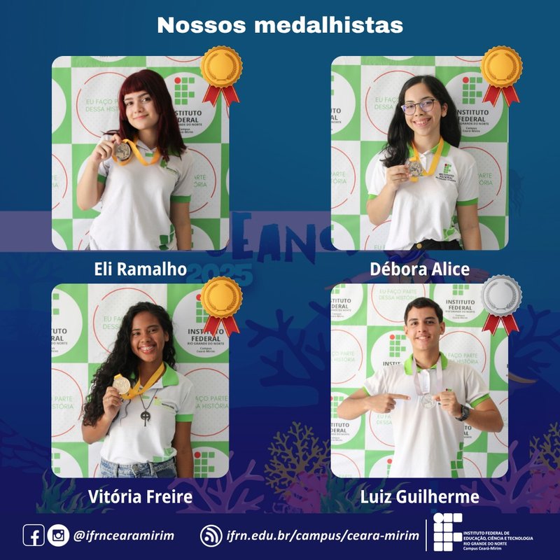 O IFRN – Campus Ceará-Mirim celebra mais uma importante conquista! Quatro estudantes se destacaram na Olimpíada Nacional de Ciências 2025 (ONC), alcançando excelentes resultados em uma das maiores competições científicas do país.