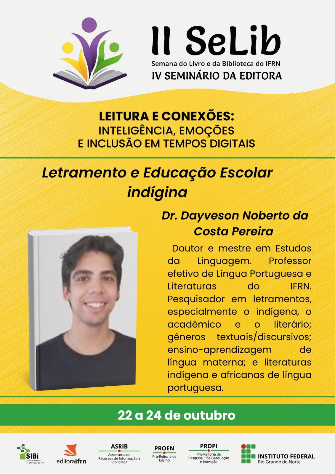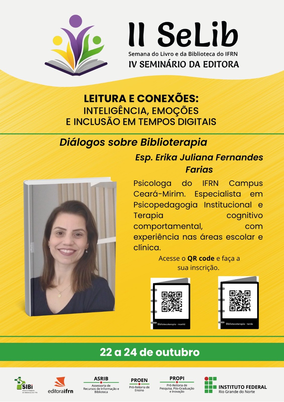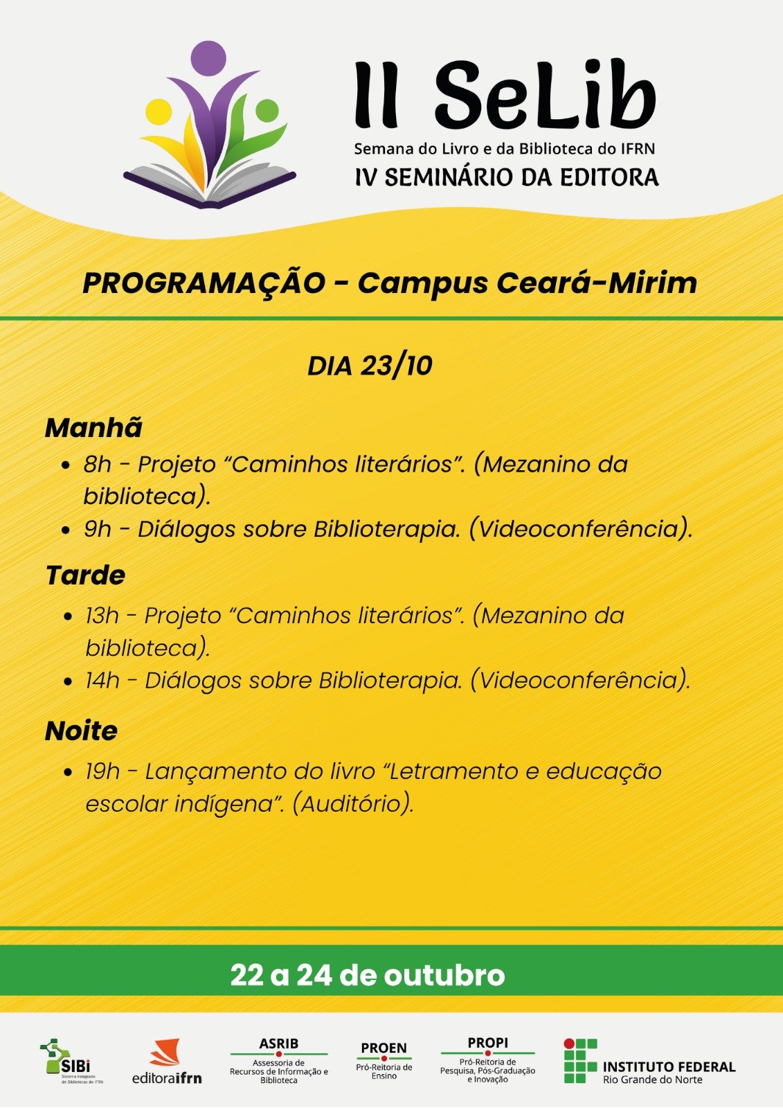 Entre os dias 22 e 24 de outubro, o Campus Ceará-Mirim do IFRN promove a edição 2025 da Semana do Livro e da Biblioteca (SeLib), que este ano tem como tema “Leitura e conexões: inteligência, emoções e inclusão em tempos digitais”.