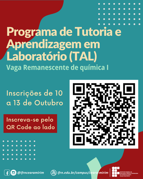 O Campus Ceará-Mirim do Instituto Federal do Rio Grande do Norte (IFRN) publicou o Edital nº 32/2025 – DG/CM/RE/IFRN, que oferta vagas para o Programa de Tutoria e Aprendizagem em Laboratório (TAL). A seleção é voltada a estudantes regularmente matriculados nos cursos técnicos de nível médio e na licenciatura em Matemática, com interesse em atuar como tutores na disciplina Química I / Química: geral e inorgânica.