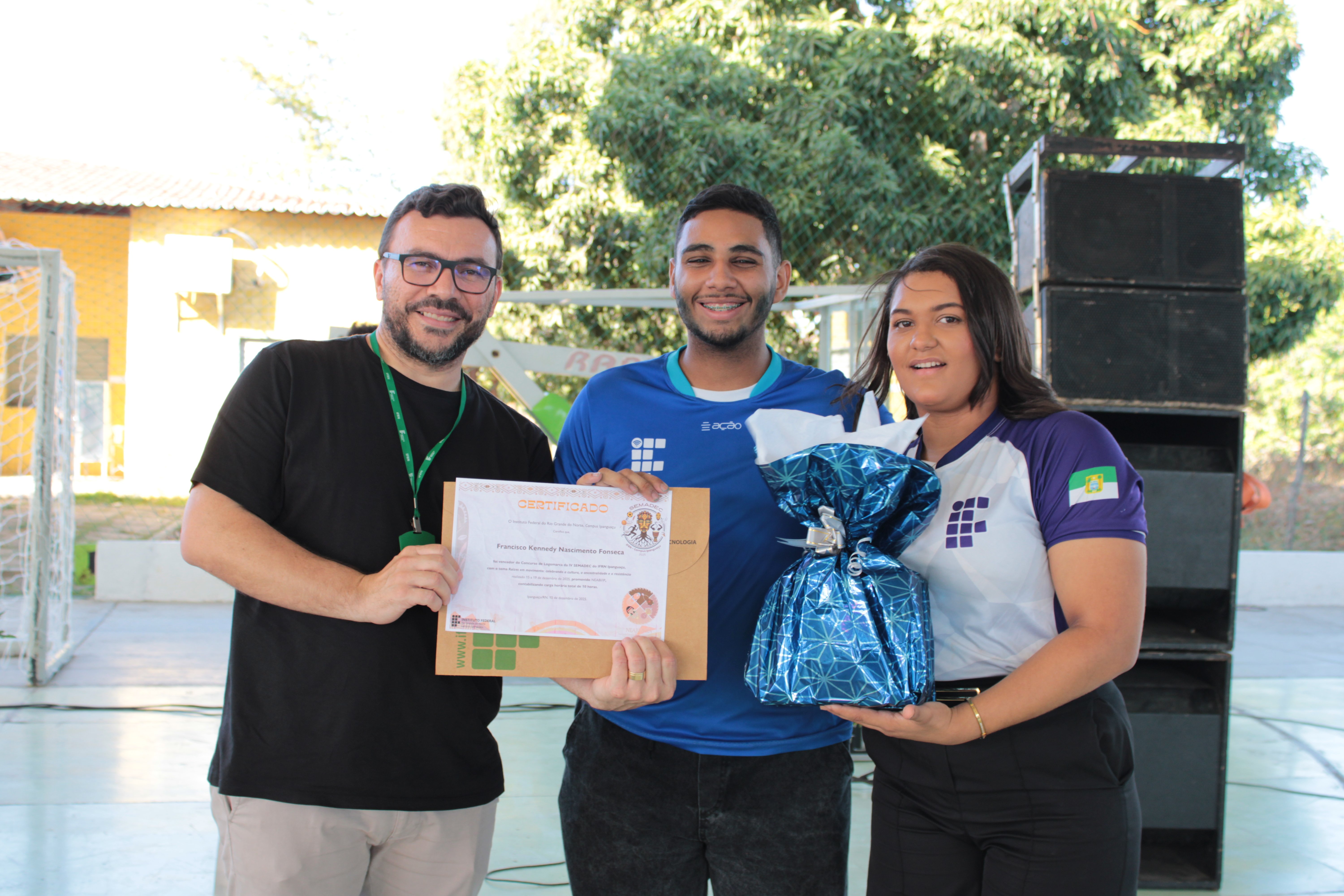 Em seu último ano no campus, John Fernandes viveu a Semadec como síntese de tudo que construiu no IFRN. Para ele, o esporte funcionou como eixo de permanência e formação: “foi isso que segurou muita gente aqui, ensinando disciplina, cuidado com o corpo e responsabilidade ao longo da trajetória estudantil. A Semadec mostra isso de forma muito clara, com a competição, as apresentações culturais e a participação das pessoas”, afirmou. Ao relembrar sua trajetória, John falou de viagens, medalhas e experiências acadêmicas que marcaram sua formação: “estou saindo com gratidão. Vivi o campus por completo, e metade das oportunidades que tive vieram do esporte”.