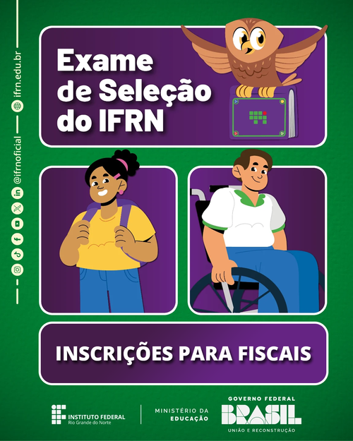 A Direção-Geral do Campus João Câmara do Instituto Federal do Rio Grande do Norte (IFRN) torna público o Edital nº 38/2025-DG/JC com a abertura de inscrições para estudantes interessados em atuar como fiscais na aplicação da prova do Exame de Seleção 2026.