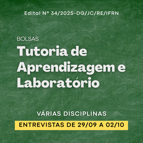A Direção-Geral do Campus João Câmara torna pública a Homologação de Inscrições relativa ao Edital Nº 34/2025-DG/JC/RE/IFRN, que trata da seleção de estudantes para atuarem como tutores em diversas disciplinas.