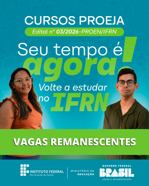 O Campus João Câmara do Instituto Federal do Rio Grande do Norte (IFRN) torna pública a 1ª chamada para o preenchimento de vagas remanescentes do curso Técnico em Comércio, na modalidade Educação de Jovens e Adultos (EJA), com ingresso no semestre 2026.1.