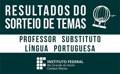 A comissão responsável pelo Processo Seletivo Simplificado para contratação de Professor Substituto da Disciplina de Língua Portuguesa e Literatura para o Campus Macau vem divulgar os temas sorteados e local de realização das provas de desempenho dos candidatos inscritos, de acordo com o item 8.2 do Edital Nº. 19/2017-DG/MC-IFRN.
