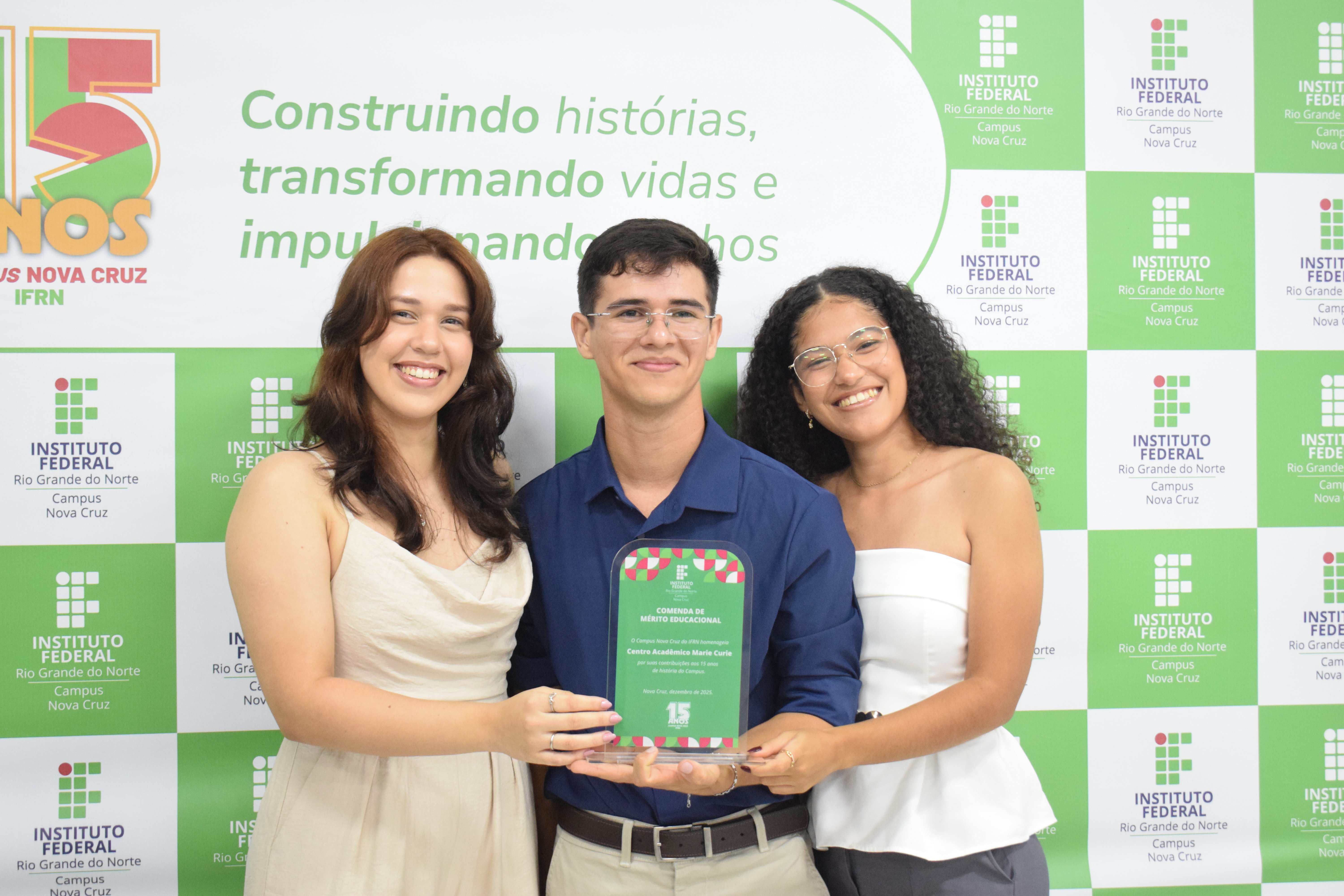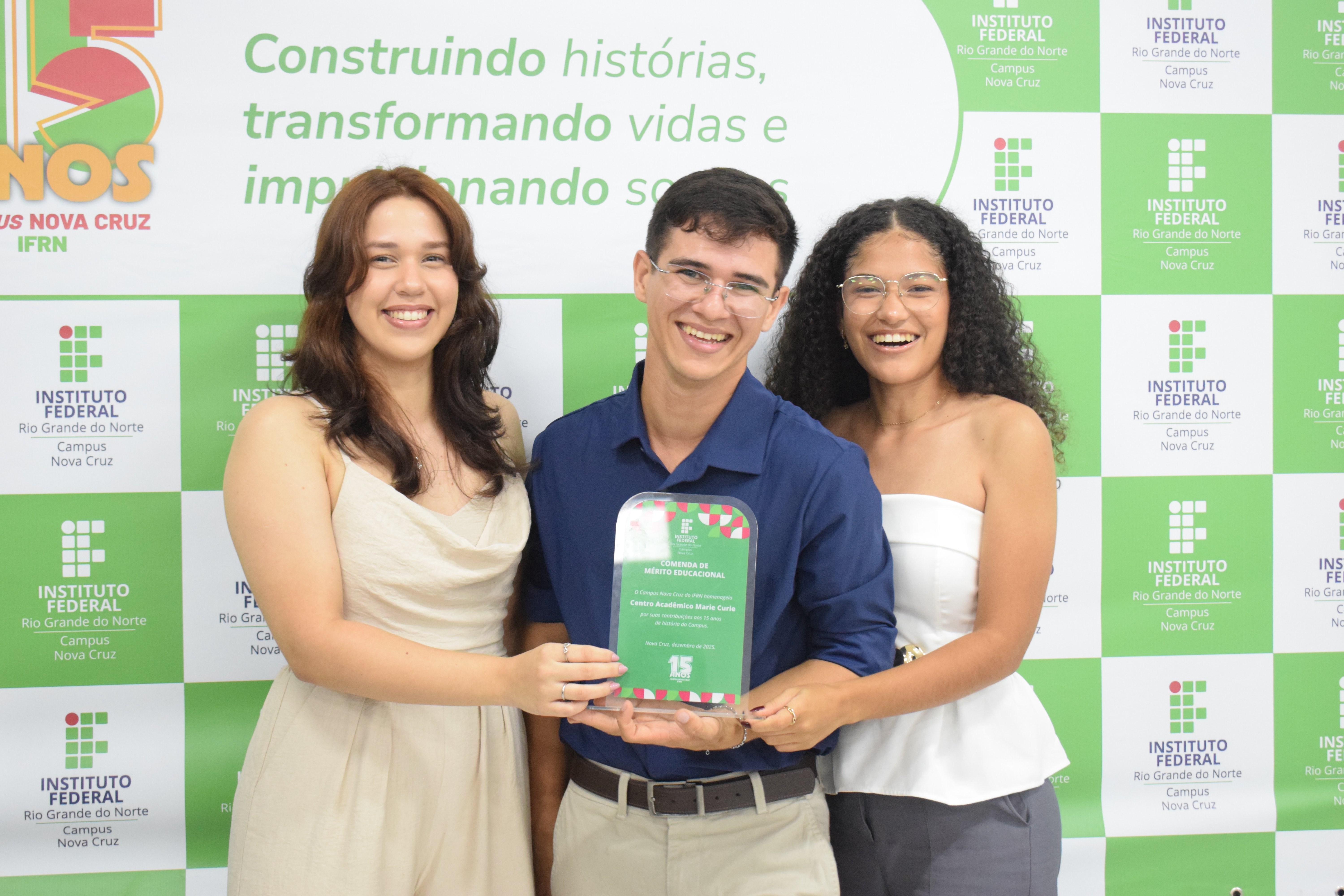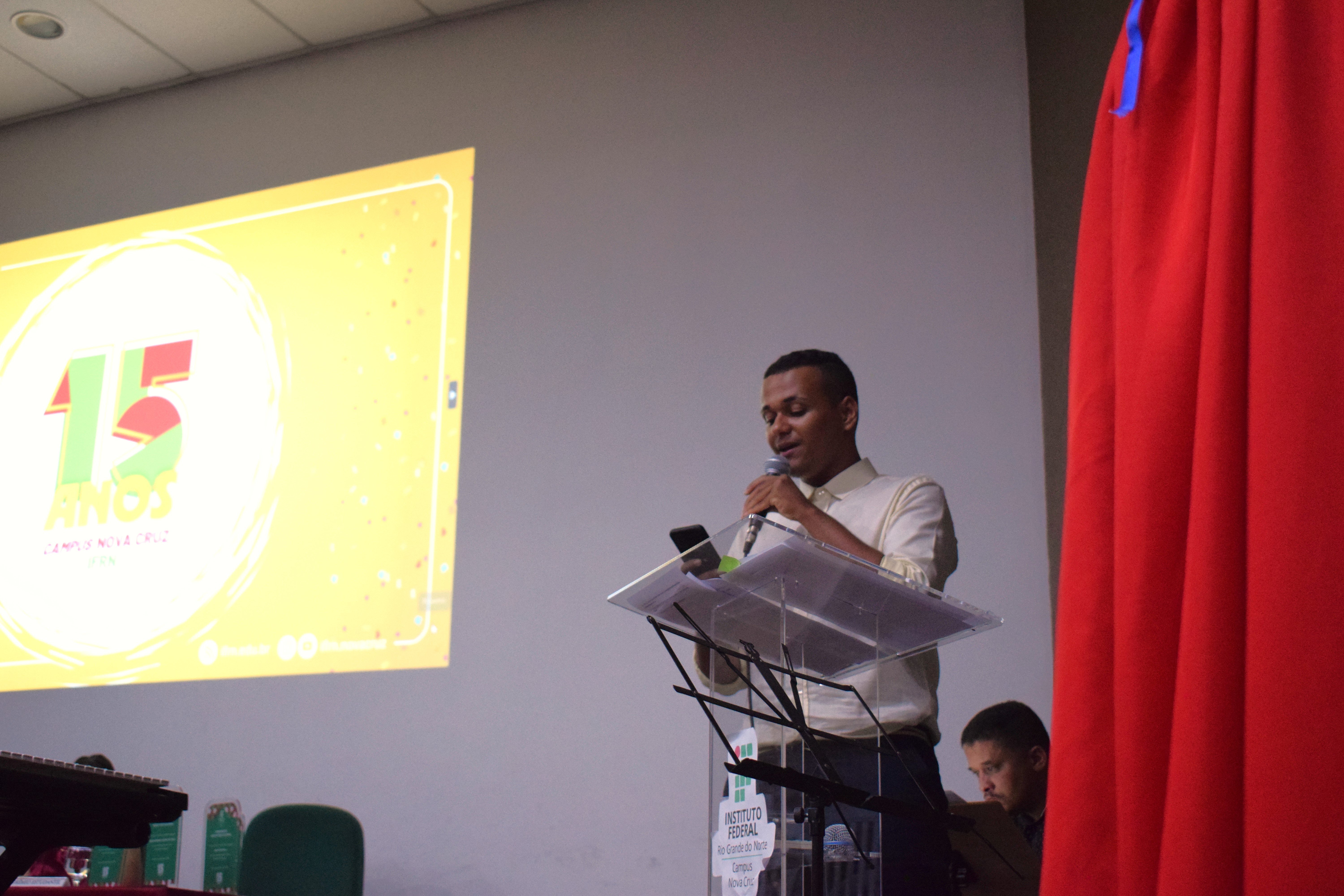 Durante a solenidade, foram homenageados agentes da comunidade interna e externa ao Campus. Para Cauã Xavier, integrante do Grêmio Estudantil Nísia Floresta e homenageado na cerimônia, “representação” foi a palavra que definiu o sentimento da noite. “Representação de que a gente está aqui e de que realmente somos valorizados enquanto estudantes”, declarou. “São 15 anos de construção coletiva que nos permitem perceber que nossa luta vale a pena, porque, sem os estudantes, não existe educação”, afirmou o gremista.