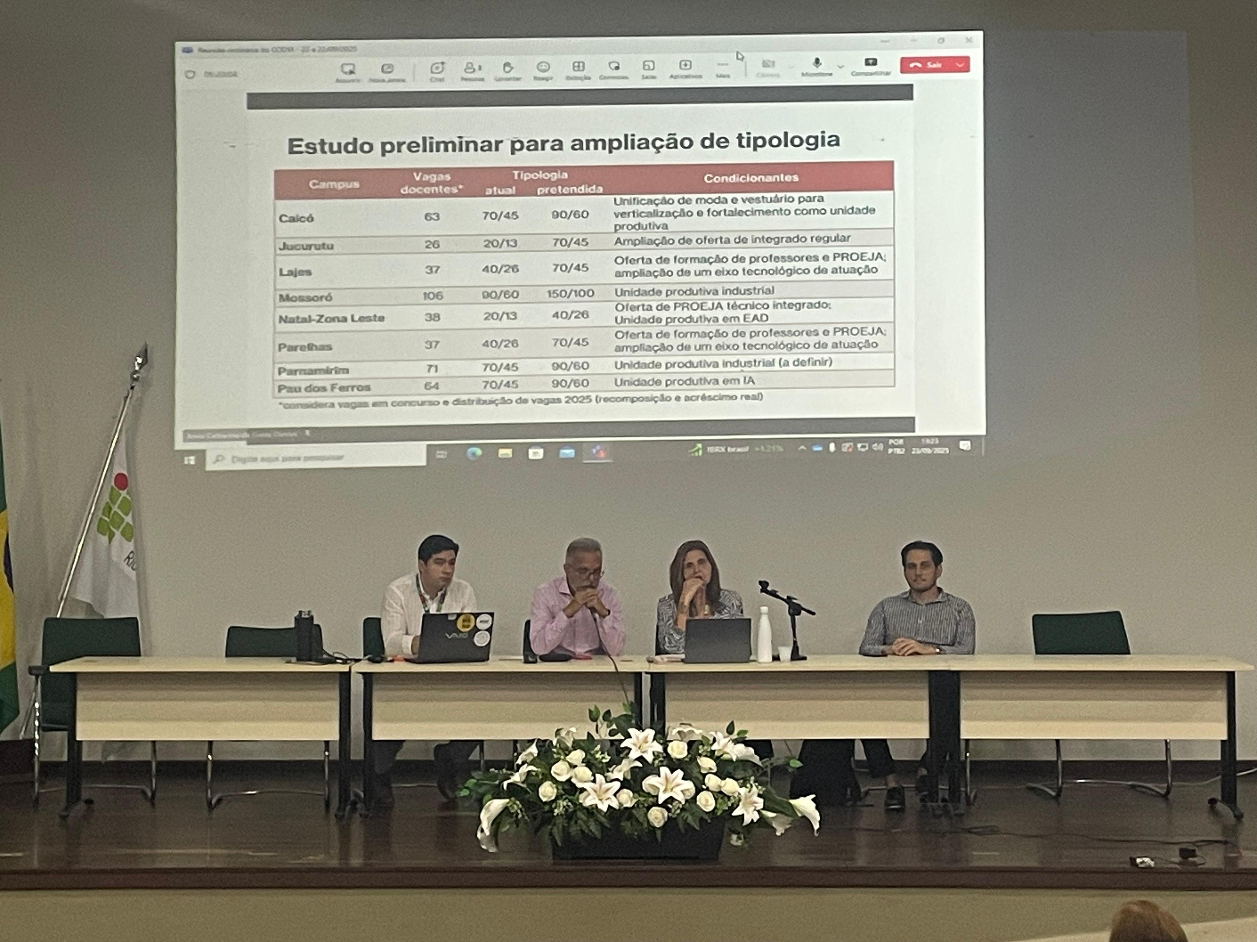 A programação contemplou pautas administrativas, acadêmicas e institucionais. Na abertura, estiveram em foco os temas administrativos, a organização dos setores de Direção-Geral e Direção Acadêmica no Plano de Gestão de Desempenho (PGD) e a análise da reserva técnica do IFRN em custeio e capital.