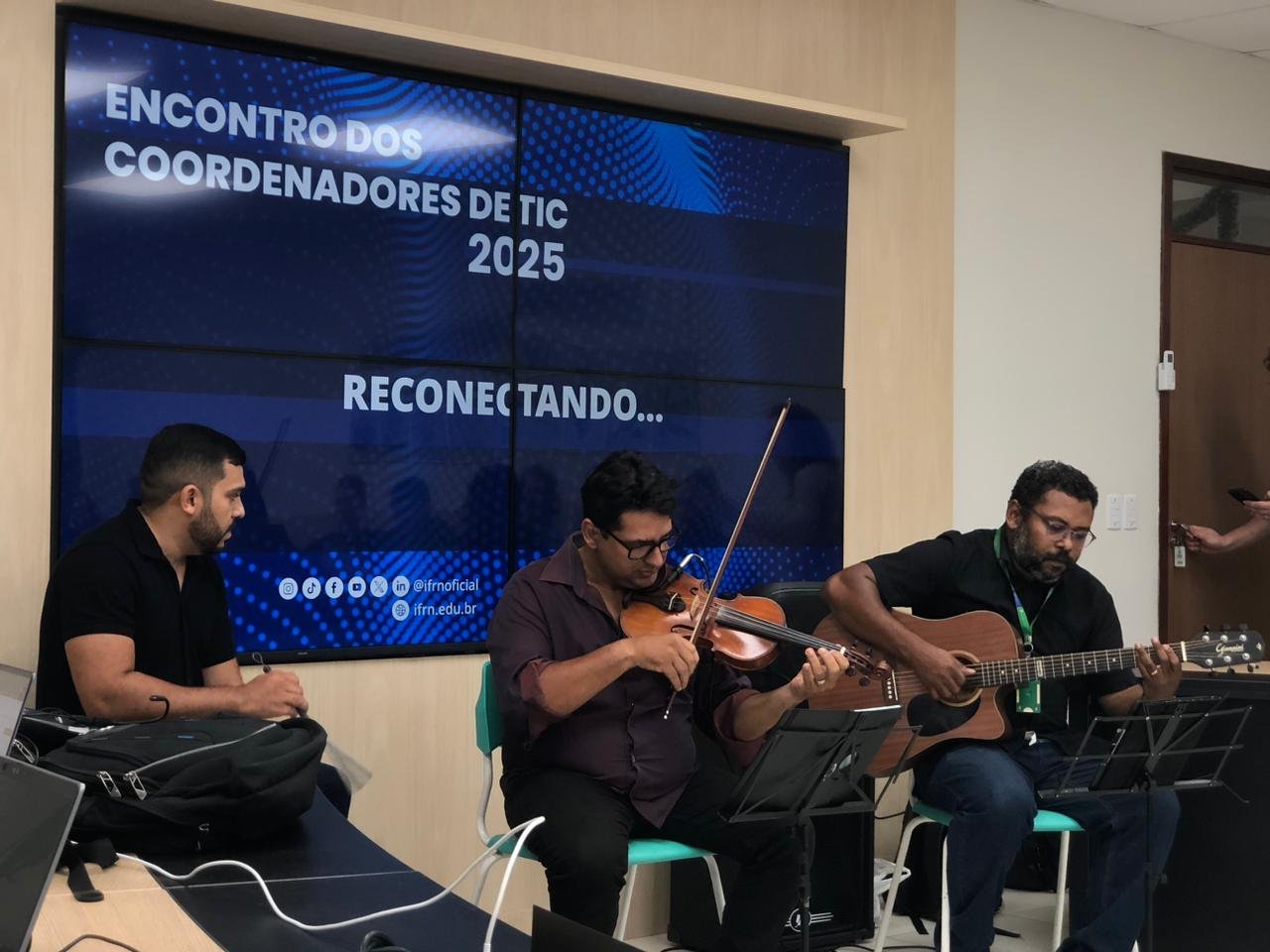 A abertura do evento contou com a participação de músicos da Orquestra do IFRN, conduzidos pelo professor João Gomes da Rocha, do Campus Natal-Central. A intervenção artística foi pensada para proporcionar um ambiente acolhedor e colaborativo, reforçando a mensagem central da edição: reconectar equipes, sentimentos e propósitos.