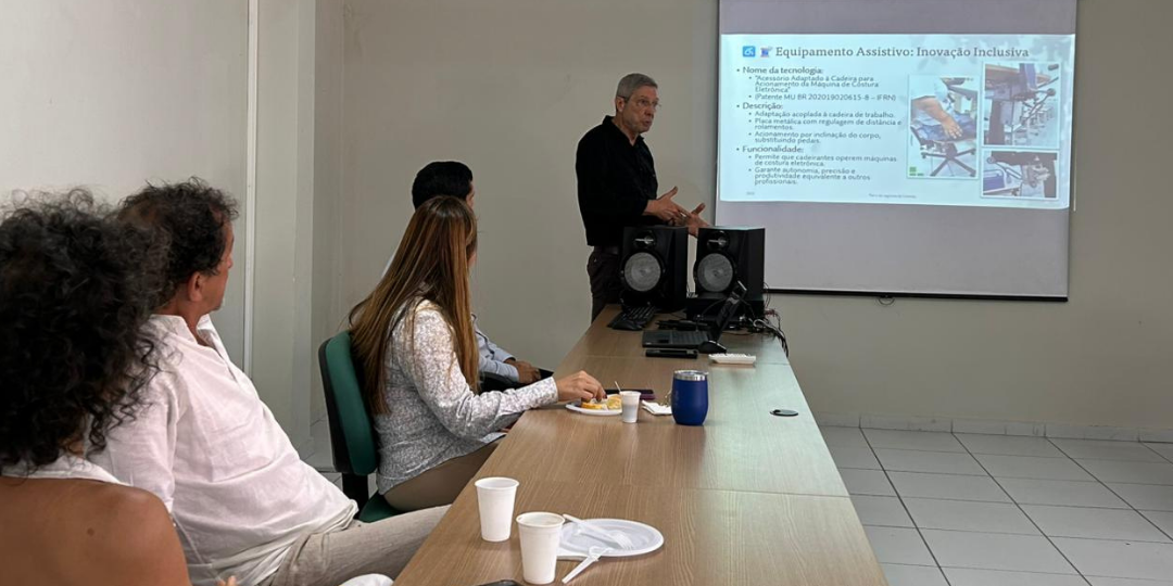 A Pró-reitoria de pesquisa, pós-graduação e inovação (Propi) do Instituto Federal do Rio Grande do Norte (IFRN) se reuniu, nesta quarta-feira (1/10), com representantes do setor têxtil do estado. O encontro ocorreu no Centro de Tecnologia e Cultura Luzia Vieira de França (CTC) e teve o intuito de apresentar os trabalhos que serão desenvolvidos no espaço, bem como um equipamento patenteado pelo Instituto, que possibilita que Pessoas com Deficiência (PcD) usem máquinas de costura convencionais.