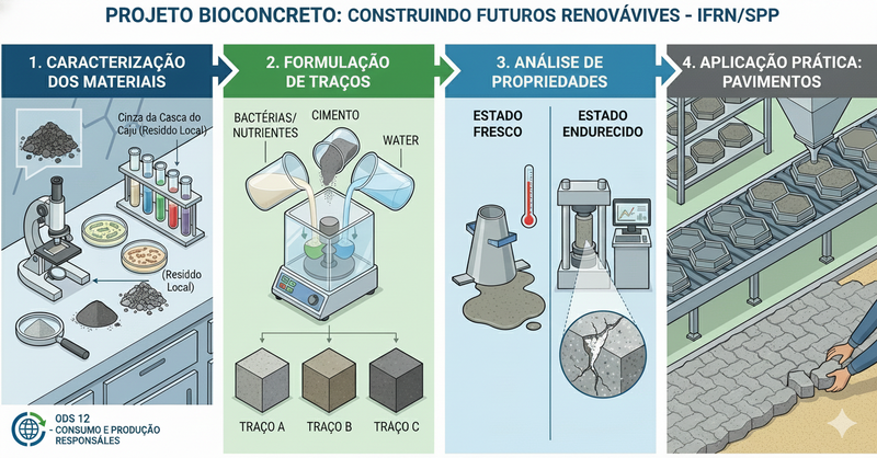 O Bioconcreto nasceu da observação de um problema regional: o beneficiamento diário da castanha de caju gera toneladas de cinzas que, muitas vezes, são descartadas inadequadamente no meio ambiente. Ao mesmo tempo, a construção civil segue como uma das principais emissoras de CO₂ devido ao uso intensivo de cimento. Diante desse cenário, os estudantes buscaram uma solução que unisse inovação, responsabilidade ambiental e vínculo com a realidade local.